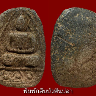 1. พิมพ์กลีบบัว แตกกรุจากเจดีย์หน้าโบสถ์ เมื่อปีพ.ศ.2494 ลักษณะเป็นทรงแบบกลีบบัว เนื้อพระสีแดง แบบพระเนื้อดินเผาทั่วไป กับอีกสีหนึ่งคือสีดำเนื้อละเอียด พุทธลักษณะด้านหน้าเป็นองค์พระปฏิมานั่งปางสมาธิเพชร พระพักตร์กลม ไม่มีพระเนตรและพระโอษฐ์ ลักษณะลำพระองค์กลมหนา พระชานุ (เข่า) โตทั้งสองข้าง ไม่มีอาสนะเนื้อพระแห้งสนิทอัดแน่น