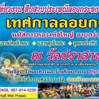 🙏งานบุญเทศกาลลอยกระทง...14-17 พ.ย.67 งานนมัสการหลวงพ่อใหญ่ พระพุทธรูปศักดิ์สิทธิ์อายุกว่า400ปี, แขวนโคมยี่เป็งล้านนา 10,000 ดวง สืบสานงานประเพณีลอยกระทง วัดปราสาท (โบราณสถานแห่งชาติ) ต.บางกร่าง อ.เมือง จ.นนทบุรี เริ่มเวลา 17.00 - 23.00 น. วันที่ 16 พ.ย. มีรำวงย้อนยุค สอบถามโทร.089-5237712