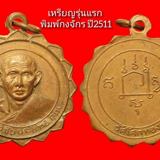เหรียญรุ่นแรกของท่านออกแบบได้สวยงาม ลักษณะเหมือนพิมพ์กงจักร ด้านหน้าเป็นรูปครึ่งองค์มีคำว่า “พระครูวิชัยประสิทธิคุณ” ซึ่งเป็นสมณศักดิ์แรกของท่าน ส่วนด้านหลังเป็นยันต์ ข้างใต้มีคำว่า “วัดโคกทอง” หากไม่ใช่ผู้รู้หรือนักสะสมสายตรงจะไม่ทราบเลยว่าเป็นเหรียญของท่าน